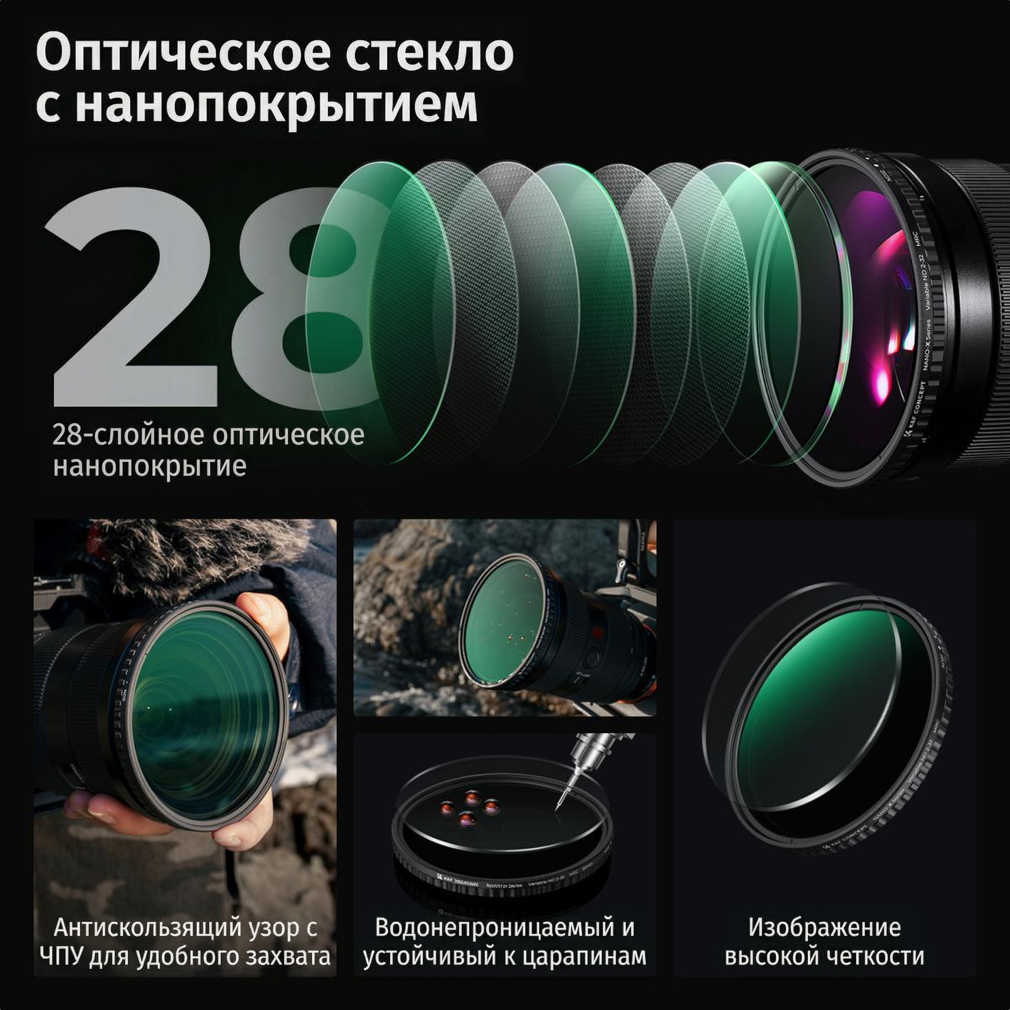 85.30.223.35 - /fotocccp/Аксессуары/Светофильтр K&F Concept Nano-X ND2-32 (1-5 Stop) 49mm KF01.1166/